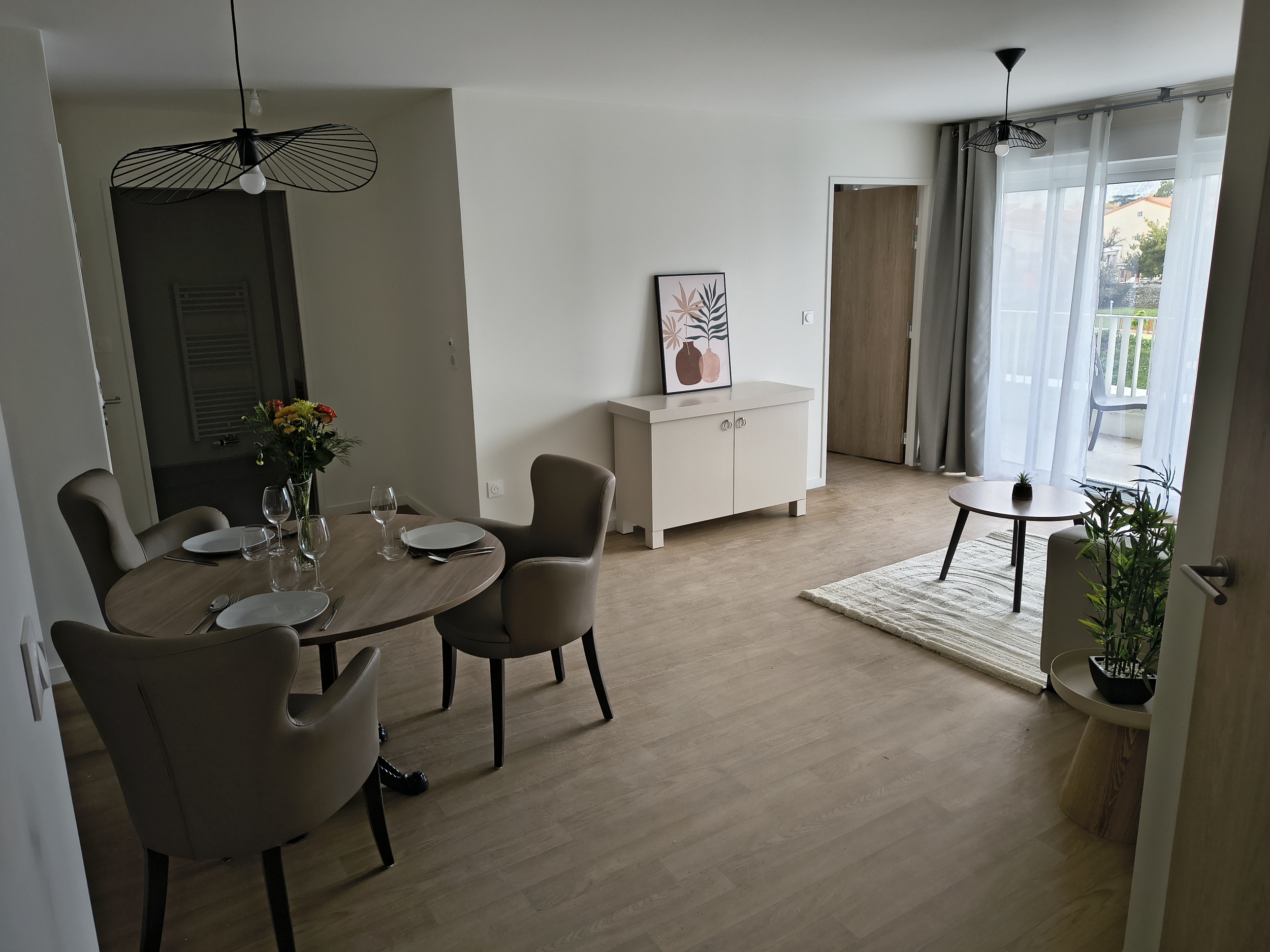 Ci-dessous, voici des photos de trois appartements témoins meublés et décorés par les équipes du SISPA VIVRE ENSEMBLE (photos non contractuelles, les résidents sont libres d’apporter le mobilier qu’ils souhaitent dans leur logement).